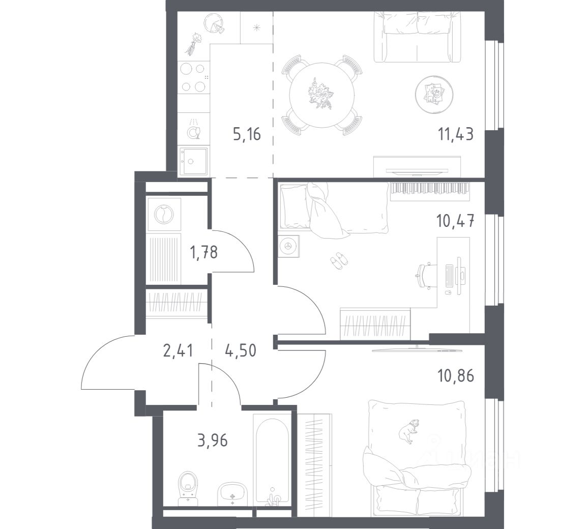 Общая площадь50,57 м2