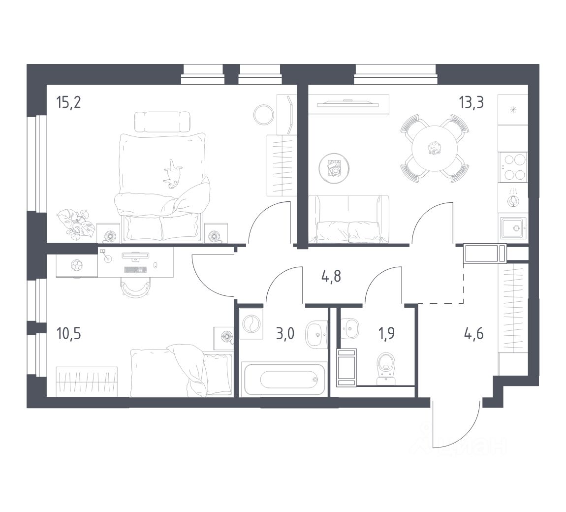 Строим кварталы для жизни с заботой о будущем. Предлагается 2-комнатная квартира комфорт-класса площадью 52,4 кв.м в корпусе 4.1 на 3-м этаже, в жилом комплексе ''Мытищи Парк''.