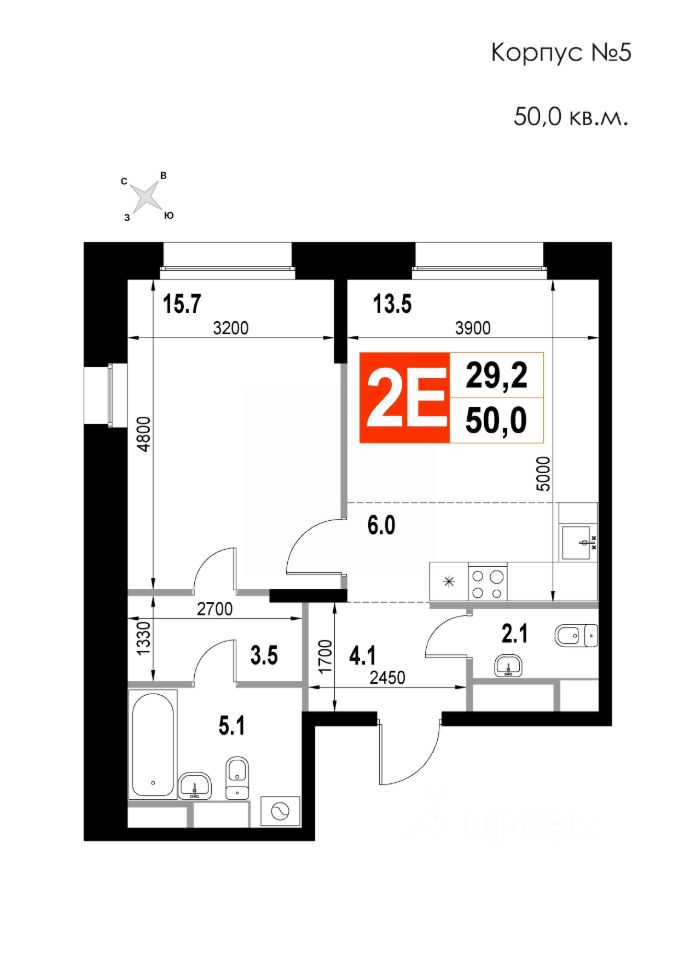 Продаётся 2-комнатная квартира в строящемся доме (Корпус 5), срок сдачи: II-кв. 2026, общей площадью 50 кв.м., на 3 этаже. Многоквартирный жилой дом со встроенно-пристроенными нежилыми помещениями и автостоянкой