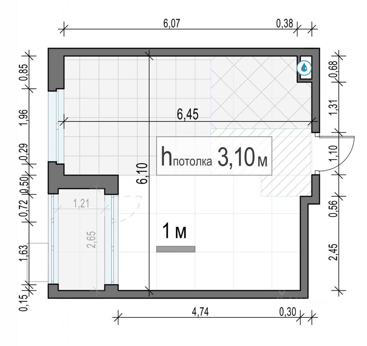 Общая площадь33,3 м2