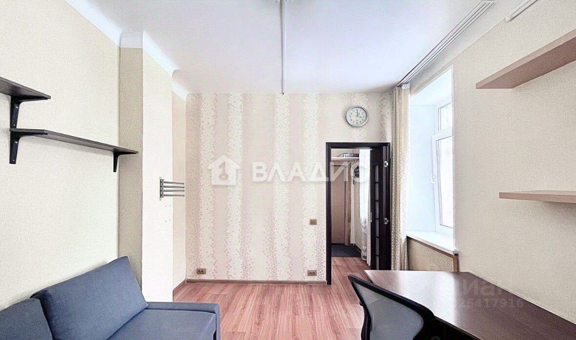 Общая площадь квартиры — 18 кв. м, жилая — 8 кв. м, кухня — 6 кв. м. Окна выходят на улицу и во двор, что обеспечивает достаточное количество естественного света.