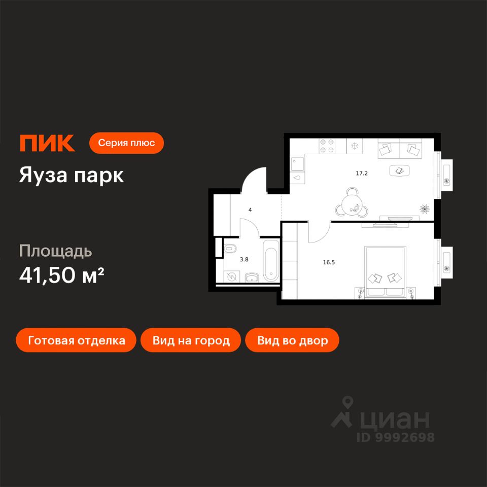 Продаётся 1-комн. квартира площадью 41,5 кв.м на 15 этаже 24 этажного дома (Корпус 14, Секция 1) проекта ПИК Яуза парк. Светлый просторный подъезд на уровне земли, функциональная планировка, большие окна, c отделкой.