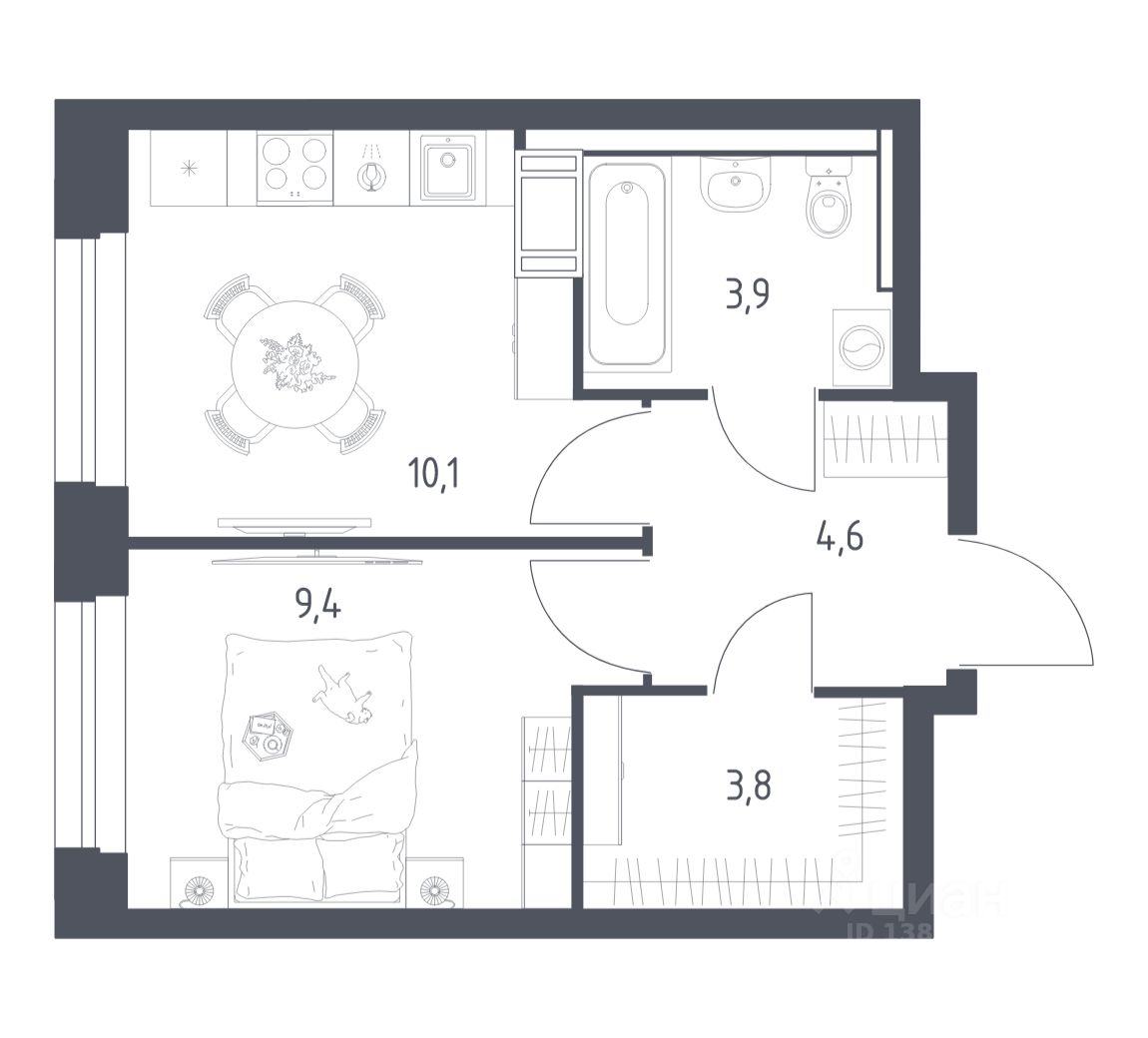 Жилая площадь9,4 м2