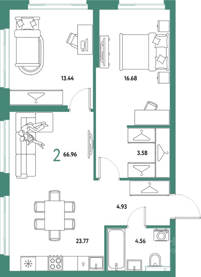 Продаётся 2-комнатная квартира в строящемся доме (Дом Васнецов), срок сдачи: IV-кв. 2027, общей площадью 66.96 кв.м., на 16 этаже. Многоэтажные жилые дома с объектами инфраструктуры, расположенные по адресу: Московская область, г.о. Мытищи, г.Мытищи, мкр. 18Б, ул. Комарова.