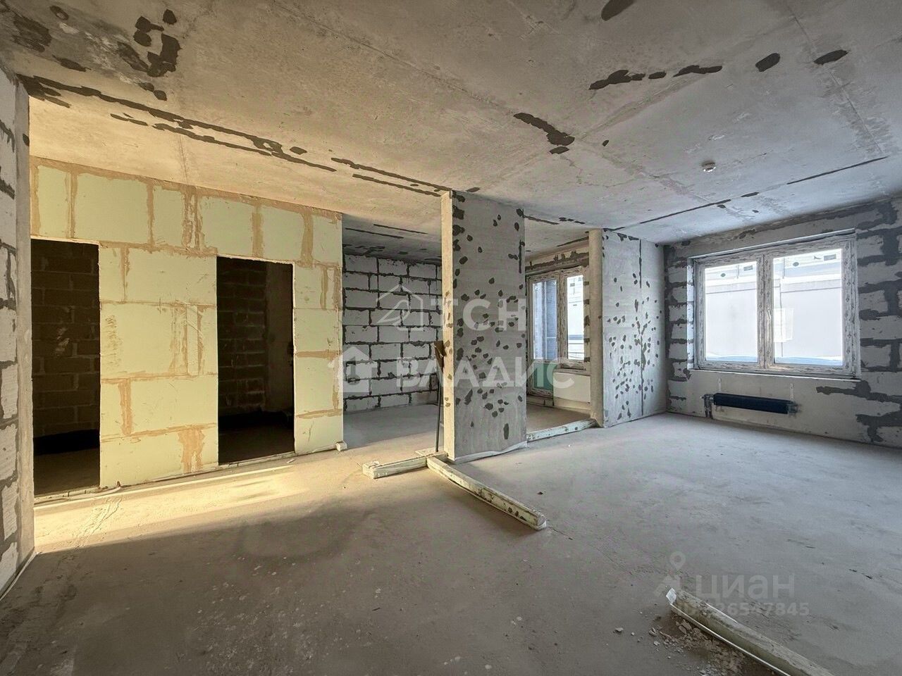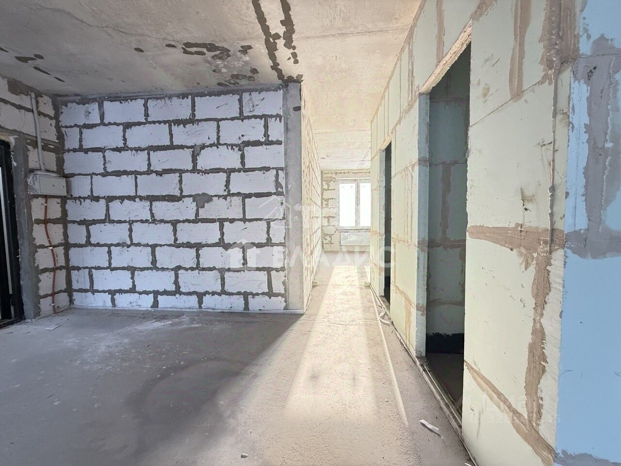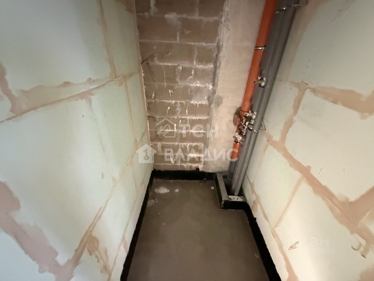 Введено электричество, домофон, так же в квартире выполнена стяжка по всей площади, завезён материал для возведения перегородок, возведена сантехкабина с гидроизоляцией пола.