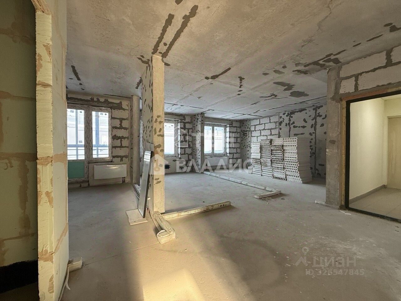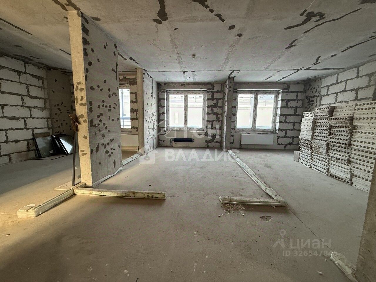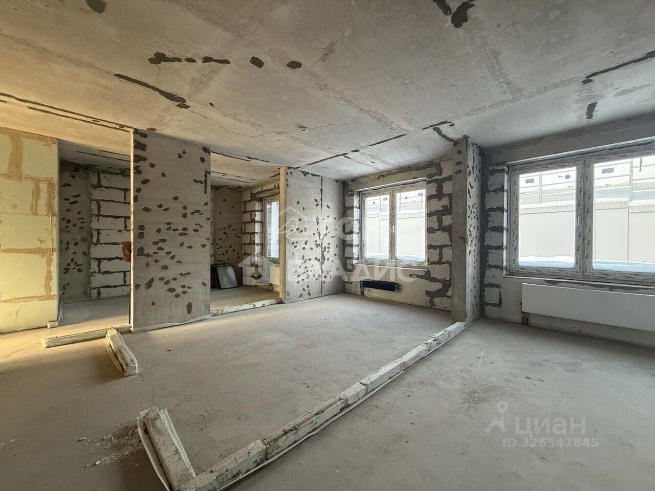 Введено электричество, домофон, так же в квартире выполнена стяжка по всей площади, завезён материал для возведения перегородок, возведена сантехкабина с гидроизоляцией пола.