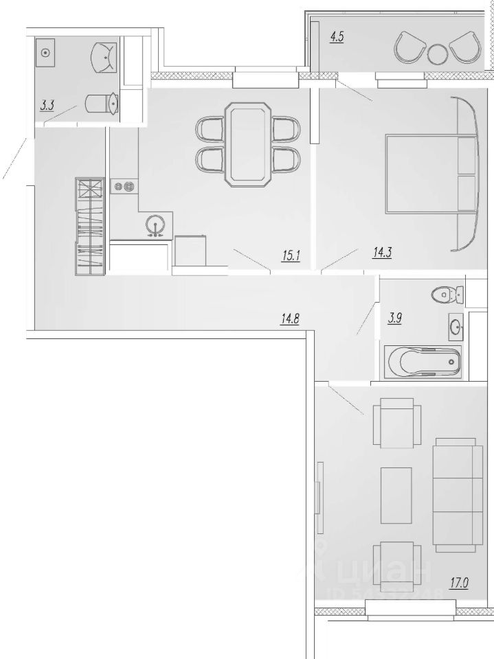 Продаётся элегантная 2-х комнатная квартира (евротрёшка) , общей площадью 69,20 м2 +лоджия 2,9 м2 в ЖК Отрадный.