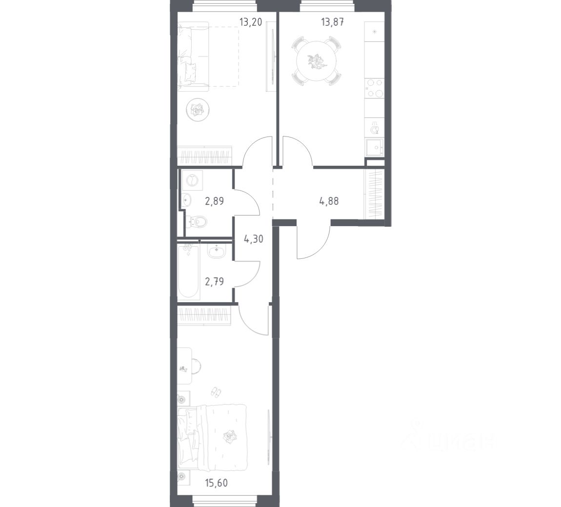 Строим кварталы для жизни с заботой о будущем. Предлагается 2-комнатная квартира комфорт-класса площадью 57,53 кв.м в корпусе 6 на 3-м этаже, в жилом комплексе ''Мытищи Парк''.