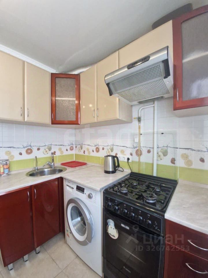 Общая площадь квартиры 44,8м.кв., кухня: 6 м², санузел совмещенный, установлены пластиковые окна, застекленный балкон. Комнаты: изолированные 18м.кв. и 14м.кв. На кухне установлен кухонный гарнитур, холодильник, газовая плита, вытяжка, стол, стулья, стиральная машинка, есть посуда. В гостиной: стенка, телевизор, диван-кровать. В детской: шкаф-купе, диван, тумбочка. Вся мебель и техника видна на фото.