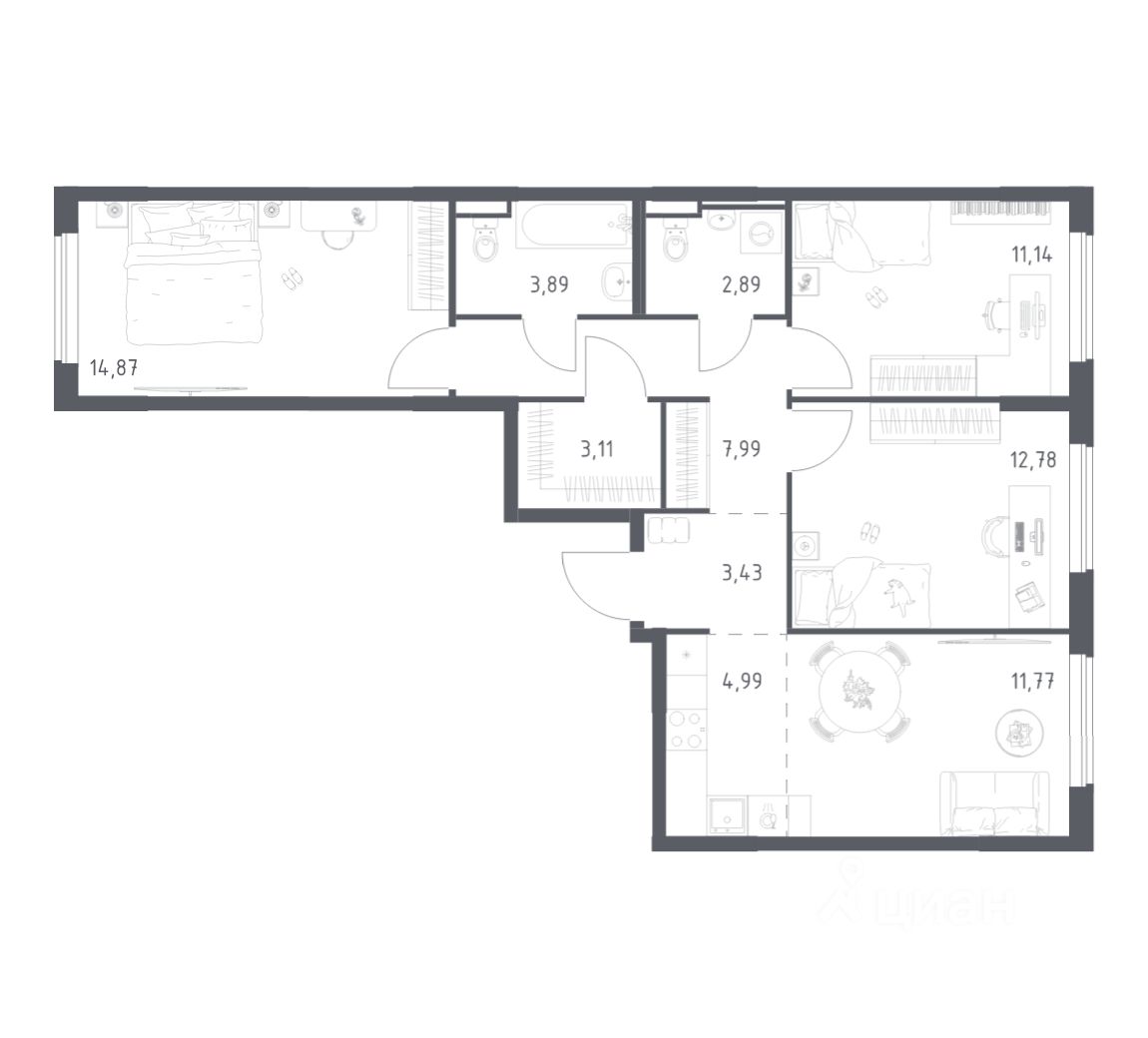 Строим кварталы для жизни с заботой о будущем. Предлагается 3-комнатная квартира комфорт-класса площадью 76,86 кв.м в корпусе 6 на 7-м этаже, в жилом комплексе ''Мытищи Парк''.