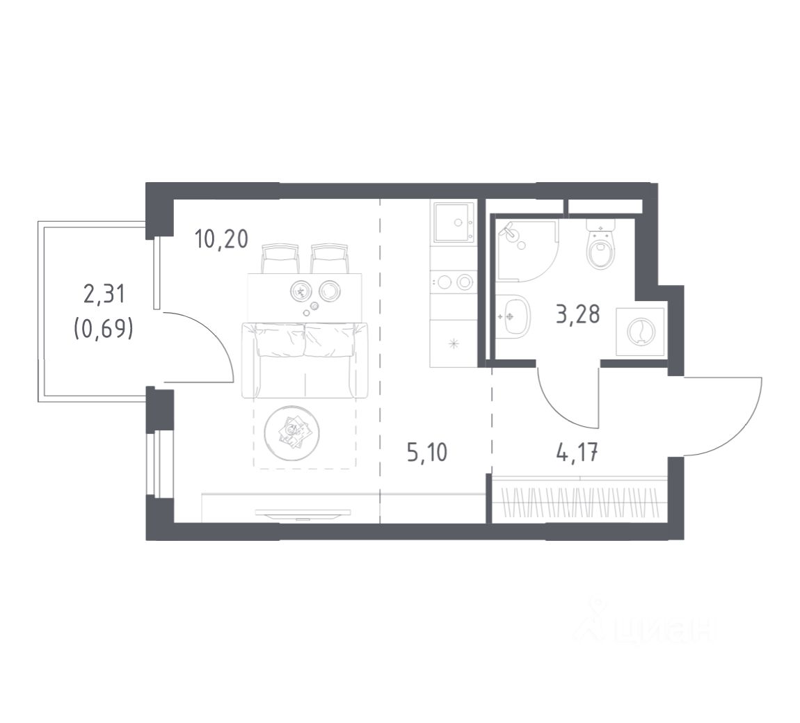 Общая площадь23,44 м2