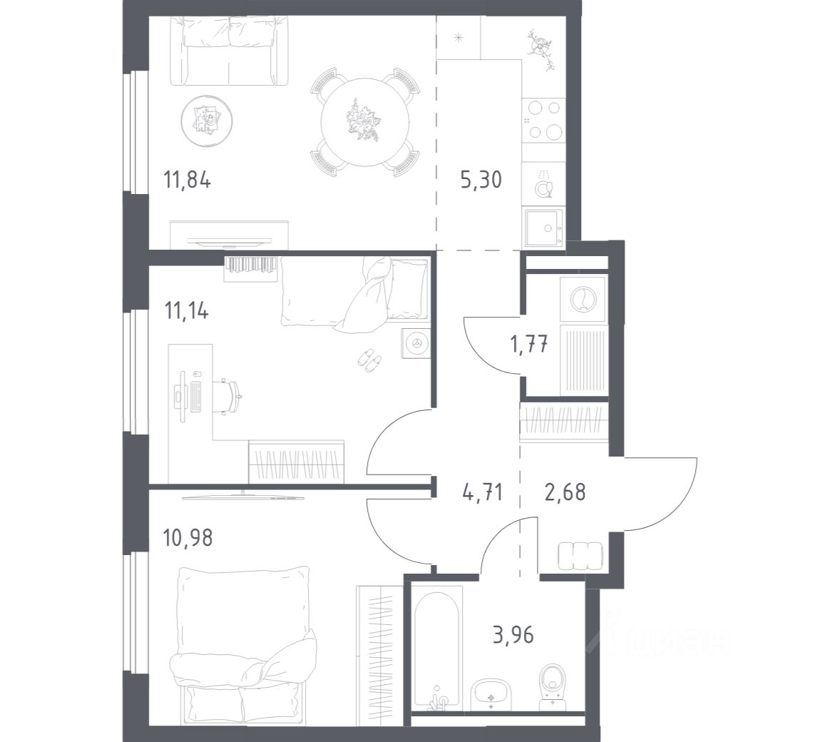 Строим кварталы для жизни с заботой о будущем. Предлагается 2-комнатная квартира комфорт-класса площадью 52,38 кв.м в корпусе 6 на 7-м этаже, в жилом комплексе ''Мытищи Парк''.