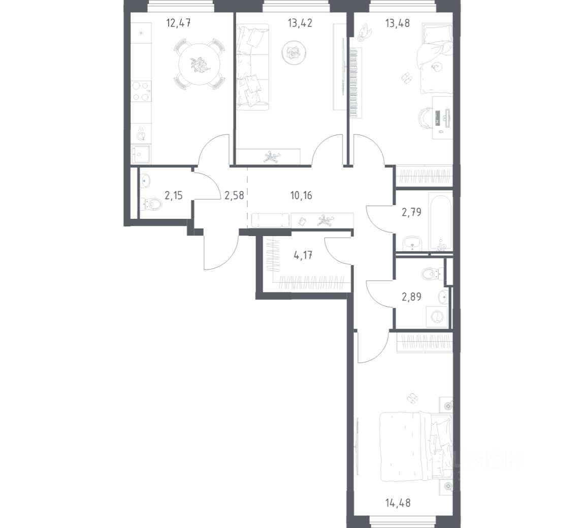 Строим кварталы для жизни с заботой о будущем. Предлагается 3-комнатная квартира комфорт-класса площадью 78,59 кв.м в корпусе 6 на 5-м этаже, в жилом комплексе ''Мытищи Парк''.