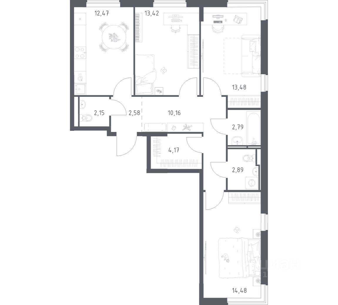 Строим кварталы для жизни с заботой о будущем. Предлагается 3-комнатная квартира комфорт-класса площадью 78,59 кв.м в корпусе 6 на 3-м этаже, в жилом комплексе ''Мытищи Парк''.