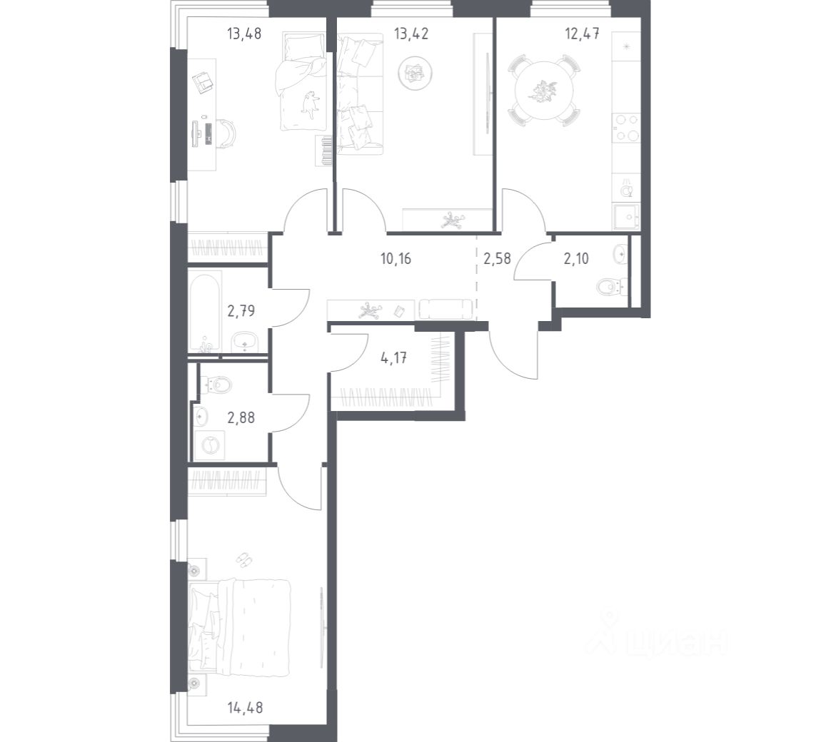 Строим кварталы для жизни с заботой о будущем. Предлагается 3-комнатная квартира комфорт-класса площадью 78,53 кв.м в корпусе 6 на 7-м этаже, в жилом комплексе ''Мытищи Парк''.