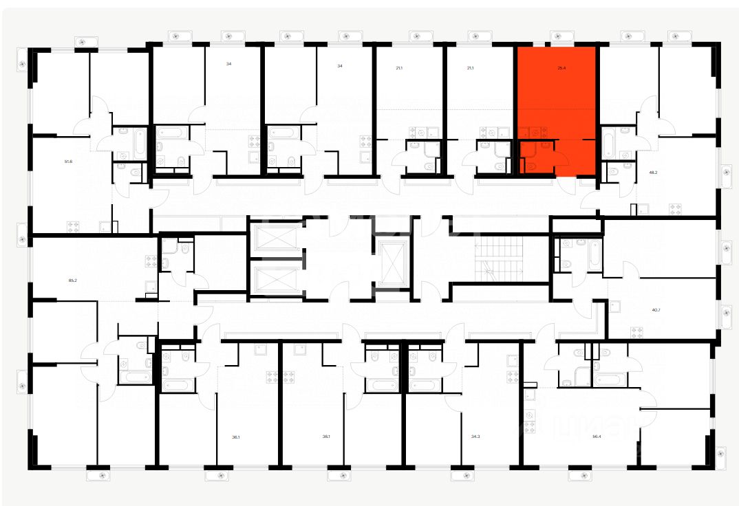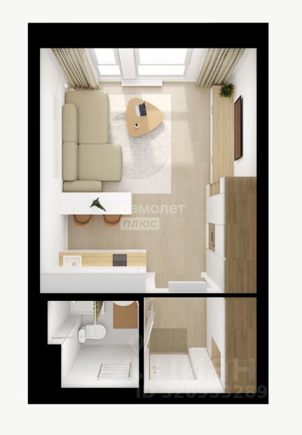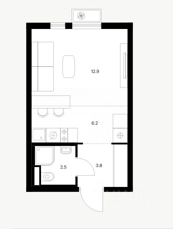 Общая площадь: 25.7 кв.м, кухня-ниша 6.2 кв.м.