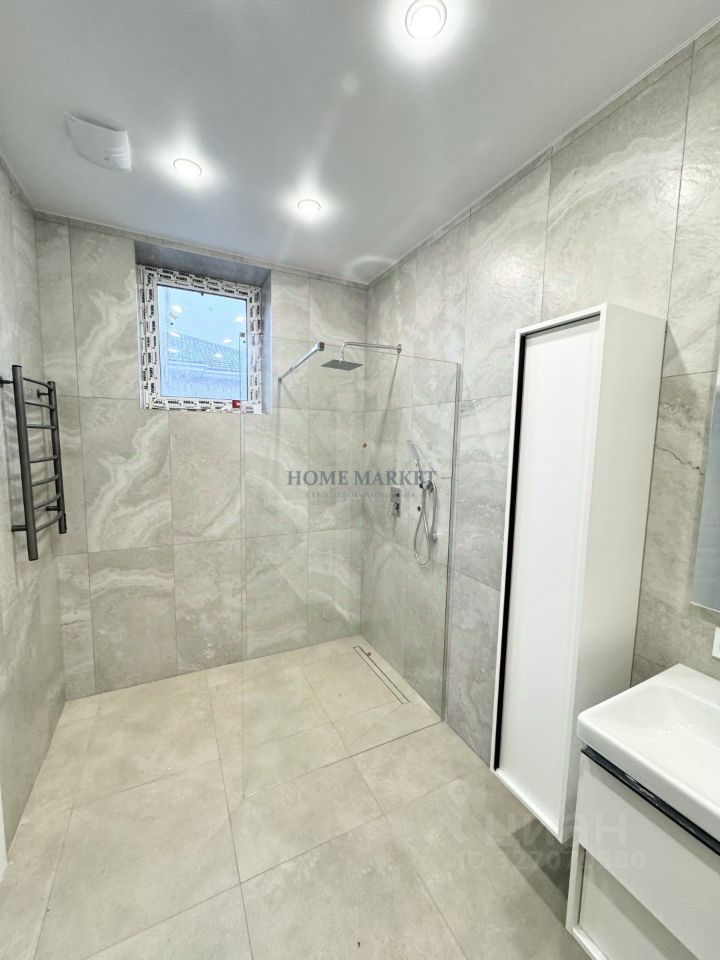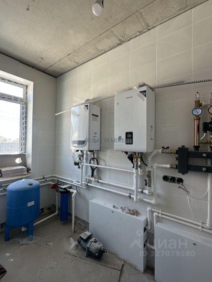 Первый этаж отапливается тёплыми полами, возле выхода на террасу будет установлен дополнительный напольный конвектор, на втором этаже, в коридоре и санузлах тёплые полы, в спальнях - радиаторы. Коммуникации: вода-скважина, канализация -септик, магистральный газ. Ровный участок 5 соток, разрешенное использование ИЖС. Перед домом уложена брусчатка, по проекту можно реализовать навес для двух автомобилей.