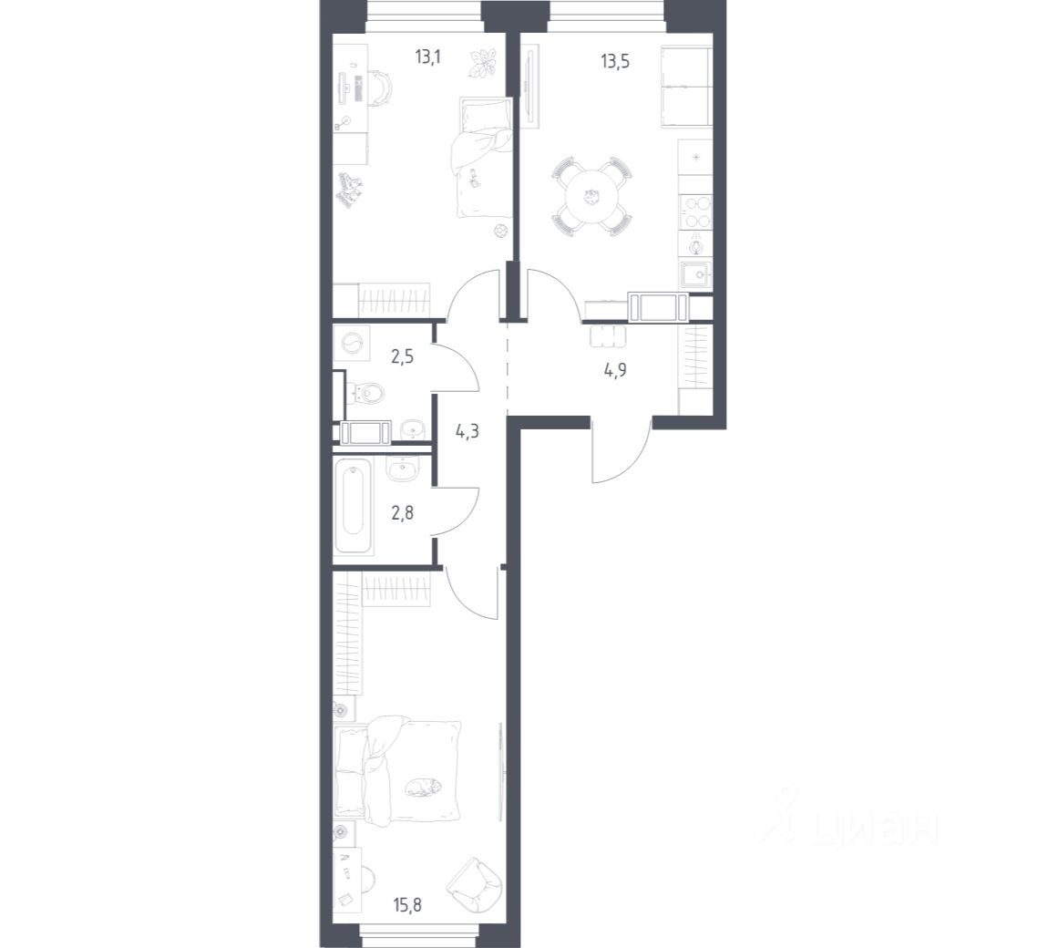 Строим кварталы для жизни с заботой о будущем. Предлагается 2-комнатная квартира комфорт-класса площадью 55,9 кв.м в корпусе 4.2 на 12-м этаже, в жилом комплексе ''Мытищи Парк''.