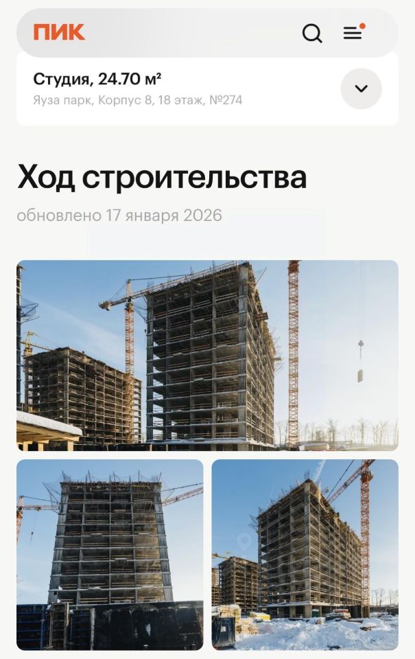 Продается квартира-студия в ЖК Яуза Парк, корпус 8, на 18 этаже , вид на столицу. Квартира будет сдана до 30 сентября 2027 г. с выполненной предчистовой отделкой.