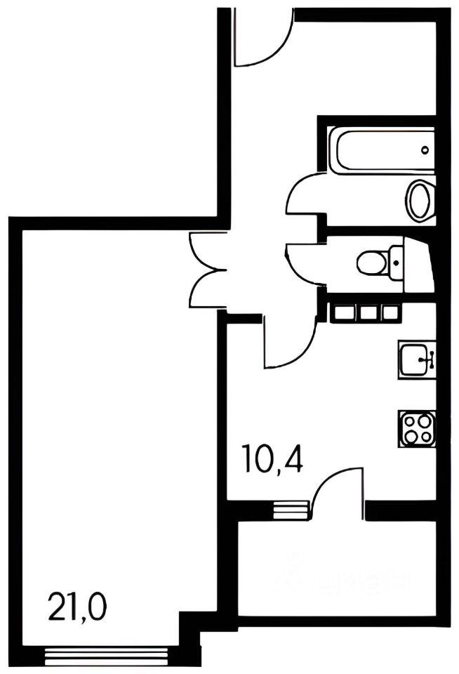 Вся площадь 47 м2, комната 20 м2, кухня 10 м2, гардеробная 6 м2, лоджия 6 м2, раздельный санузел с полноценной ванной.