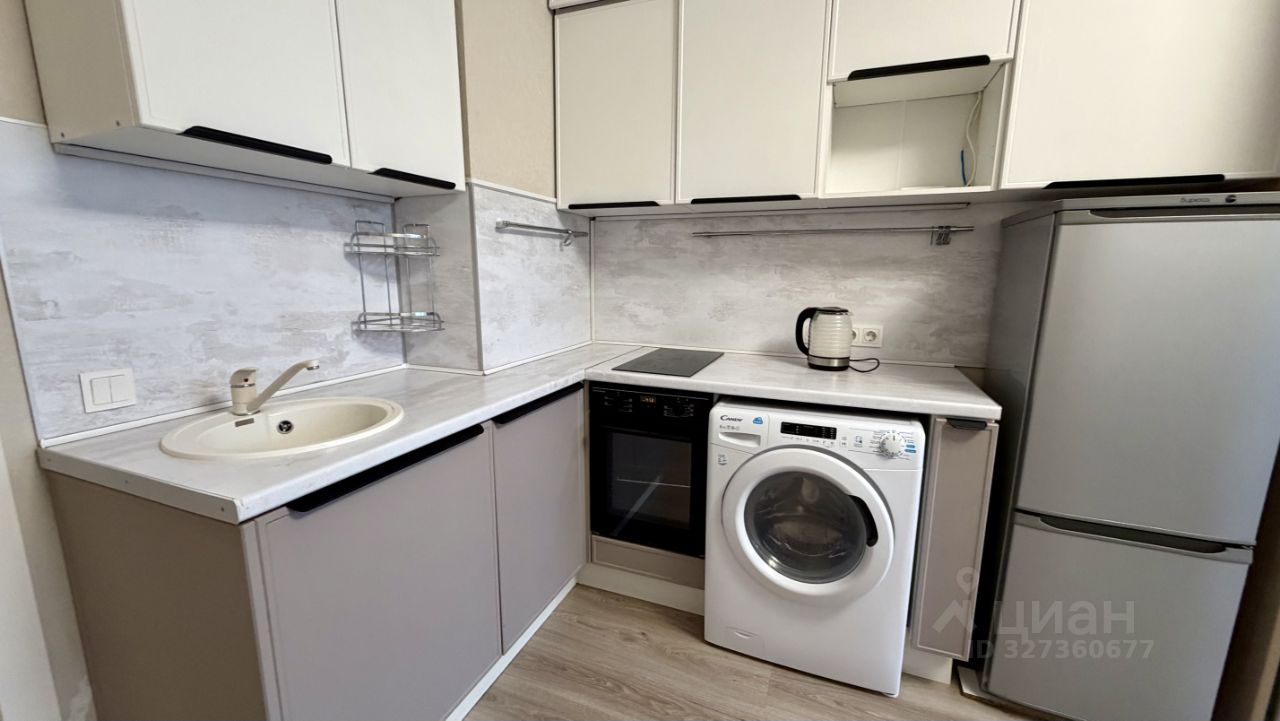 Студия полностью меблирована: диван двуспальный, кухня полностью укомплектована мебелью и техникой. Полноценное рабочие место для работы и жизни.